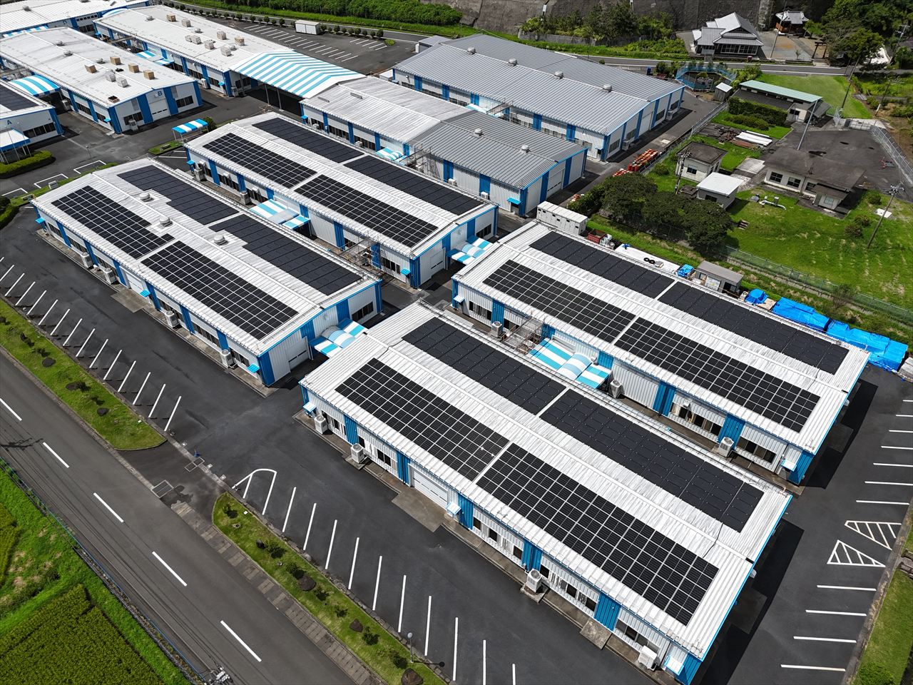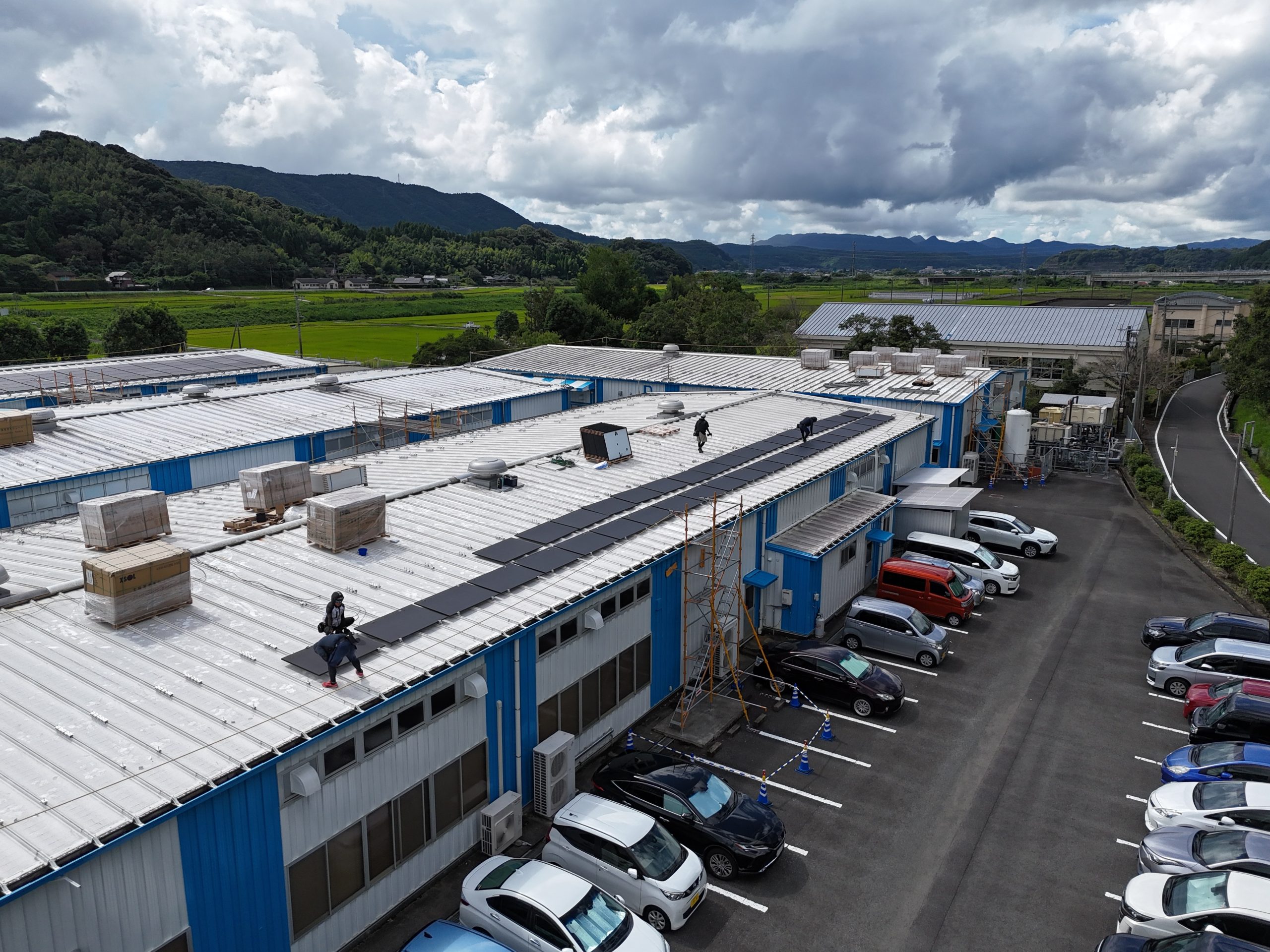 上空からご覧いただくと、パネルの通りが均一に整えられていることがお分かりいただけると思います。施工品質にも非常に満足しており、細かな調整まで丁寧に作業してくれている作業員の皆様には感謝の気持ちでいっぱいです。